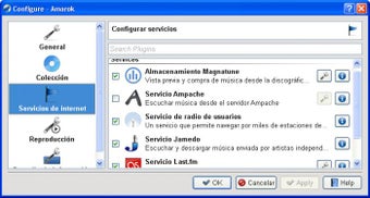 Amarok integra servicios web como Jamendo, Last.fm o Magnatune, lo que nos permite escuchar música gracias a Internet, y además dispone de una completa colección de emisoras en streaming para escuchar canciones de estilos concretos.